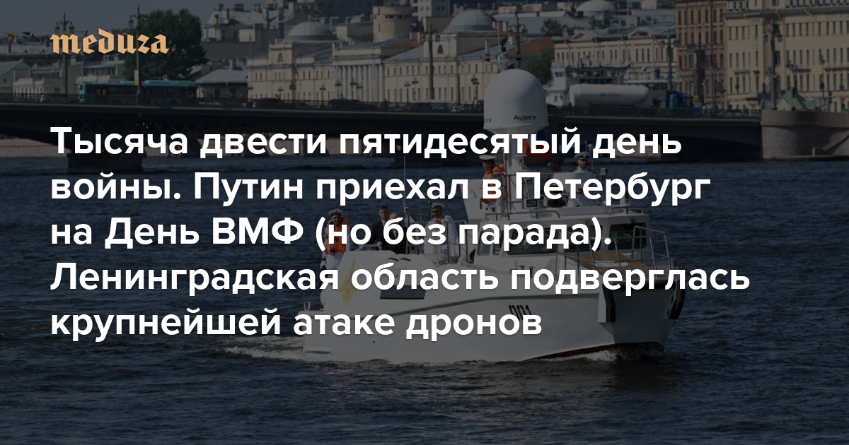 Война Тысяча двести пятидесятый день. Путин приехал в Петербург на День ВМФ (но без парада). Ленинградская область подверглась крупнейшей атаке дронов