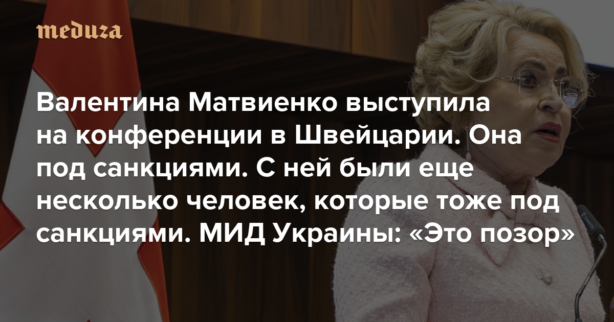 Валентина Матвиенко выступила на конференции в Швейцарии. Она под санкциями. С ней были еще несколько человек, которые тоже под санкциями МИД Украины: «Это позор». ФБК: «Отвратительное ползучее снятие санкций»