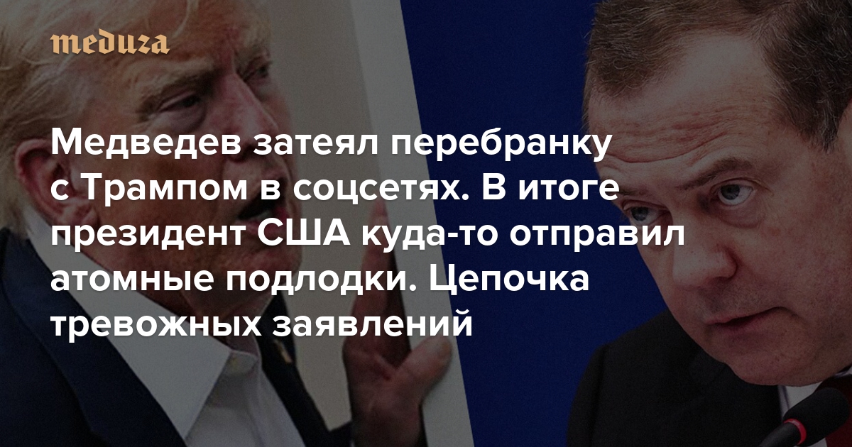Медведев затеял перебранку с Трампом в соцсетях. В итоге президент США куда-то отправил атомные подлодки Цепочка тревожных заявлений