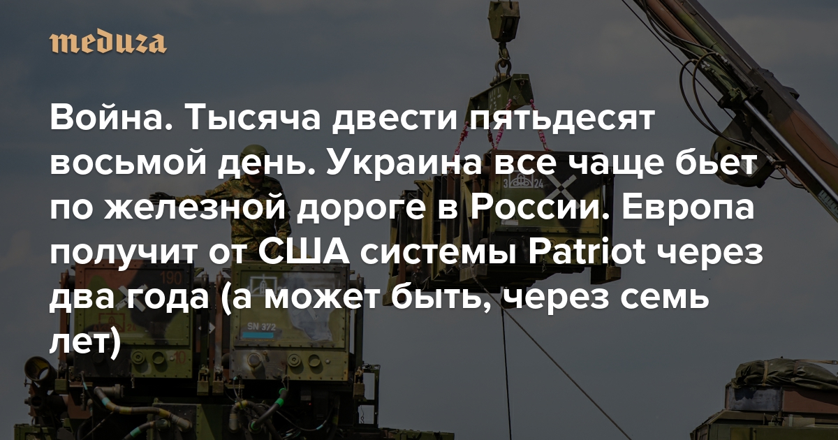 Война Тысяча двести пятьдесят восьмой день. Украина все чаще бьет по железной дороге в России. Европа получит от США системы Patriot через два года (а может быть, через семь лет)