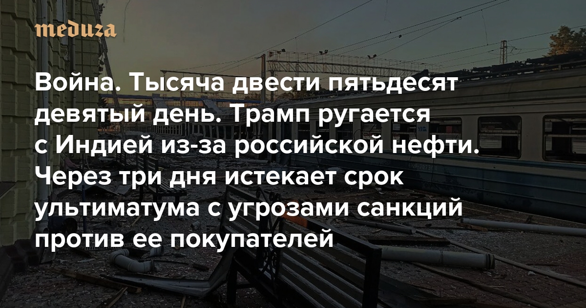 Война Тысяча двести пятьдесят девятый день. Трамп ругается с Индией из-за российской нефти. Через три дня истекает срок ультиматума с угрозами санкций против ее покупателей