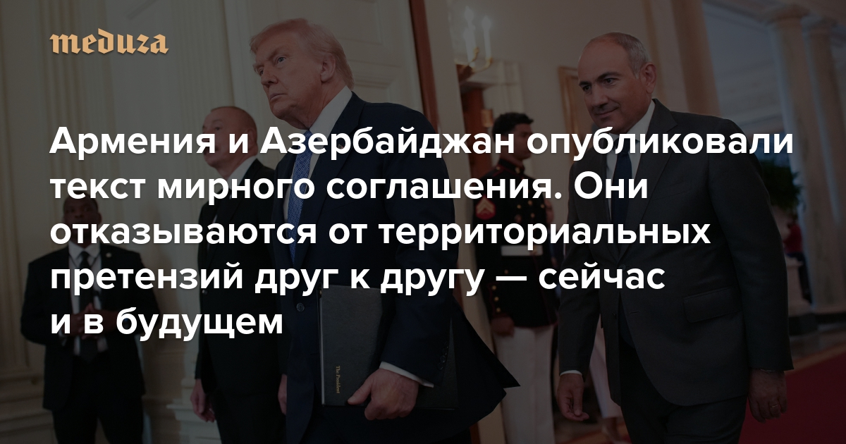 Армения и Азербайджан опубликовали текст мирного соглашения. Именно этот документ представители МИД двух стран парафировали в Вашингтоне в присутствии глав республик Никола Пашиняна и Ильхама Алиева, а также президента США Дональда Трампа. После этого Трамп заявил: «Нам удалось установить мир», а лидеры Армении и Азербайджана согласились, что президент США достоин Нобелевской премии. Мирное соглашение включает 17 статей. Раньше о его содержании было почти ничего не известно. Теперь этот документ размещен на сайтах МИД Армении и МИД Азербайджана. Соглашение пока не подписано и не ратифицировано ни одной из сторон. Публикуем его перевод (отредактированный и сокращенный).