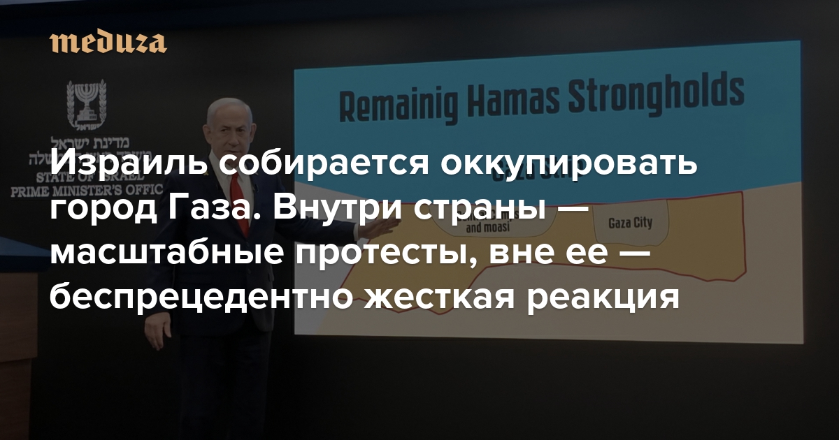 Израиль собирается оккупировать город Газа. Внутри страны — масштабные протесты, вне ее — беспрецедентно жесткая реакция
