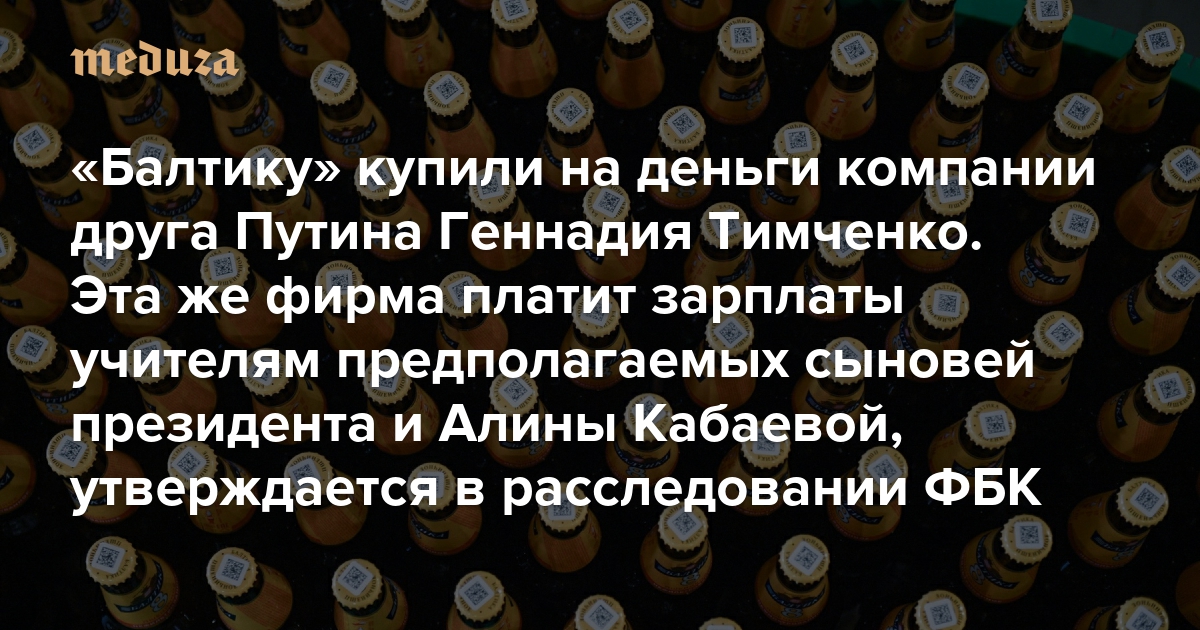 «Балтику» купили на деньги компании друга Путина Геннадия Тимченко. Эта же фирма платит зарплаты учителям предполагаемых сыновей президента и Алины Кабаевой, утверждается в расследовании ФБК