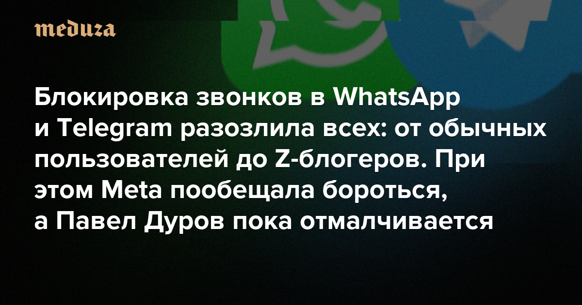 Блокировка звонков в WhatsApp и Telegram разозлила всех: от обычных пользователей до Z-блогеров При этом Meta пообещала бороться, а Павел Дуров пока отмалчивается