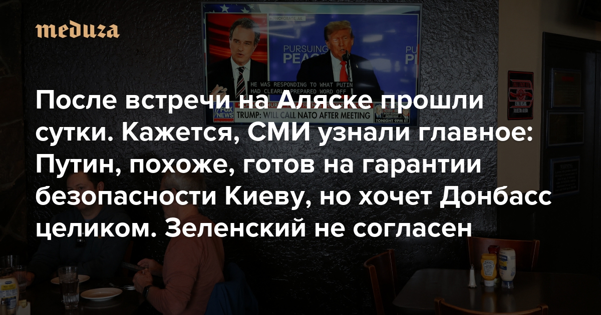 После встречи на Аляске прошли сутки. Официальной информации все еще почти нет — но СМИ, кажется, узнали главное Путин, похоже, готов на гарантии безопасности Киеву, но хочет Донбасс целиком. Зеленский не согласен
