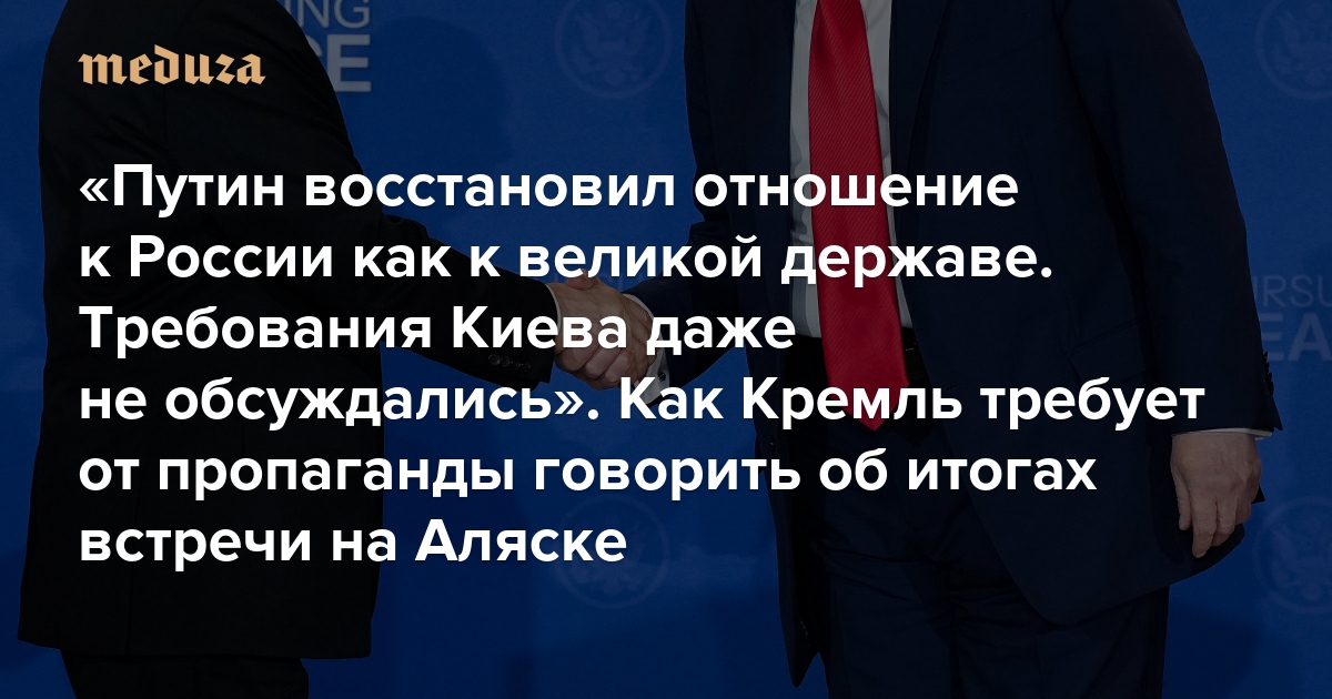 «Путин восстановил отношение к России как к великой державе. Требования Киева даже не обсуждались» Как Кремль требует от пропаганды говорить об итогах встречи на Аляске