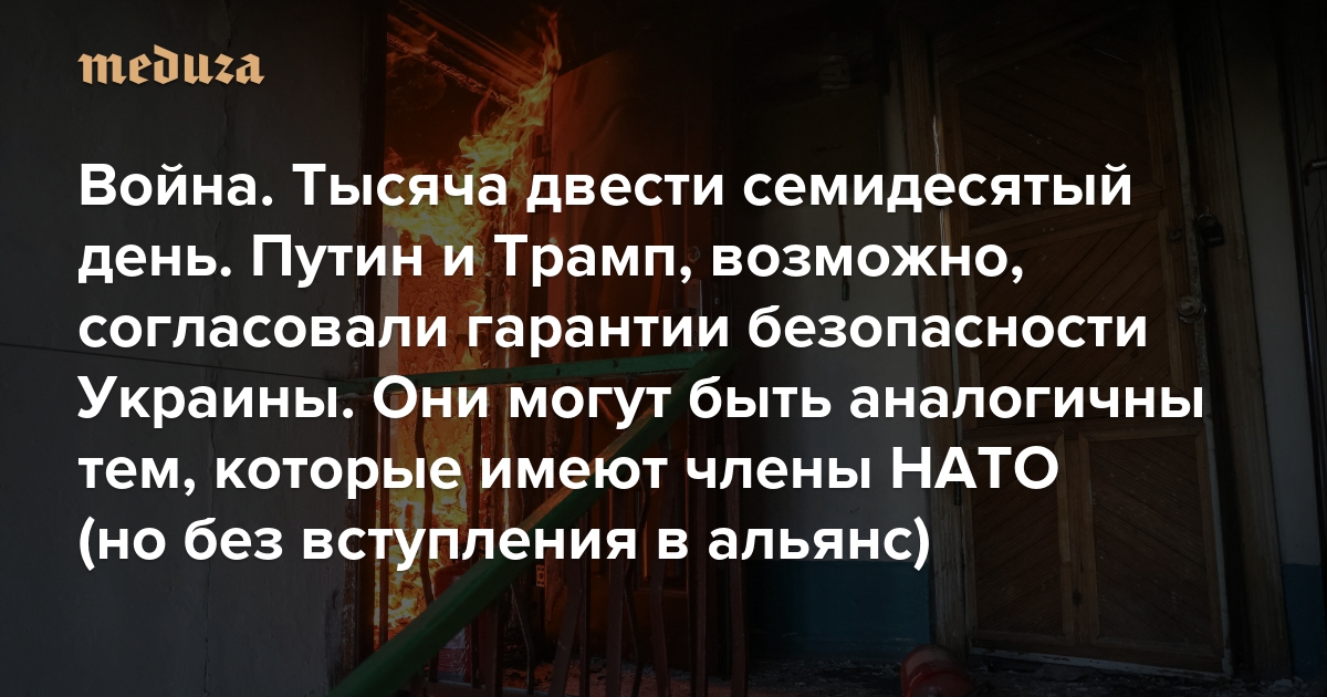 Война Тысяча двести семидесятый день. Путин и Трамп, возможно, согласовали гарантии безопасности Украины. Они могут быть аналогичны тем, которые имеют члены НАТО (но без вступления в альянс)