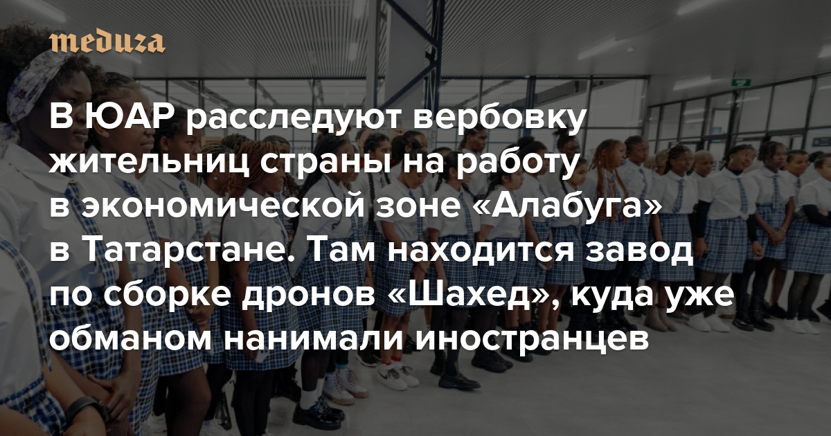 В ЮАР расследуют вербовку жительниц страны на работу в экономической зоне «Алабуга» в Татарстане Там находится завод по сборке дронов «Шахед», куда уже обманом нанимали женщин из Азии и других стран Африки