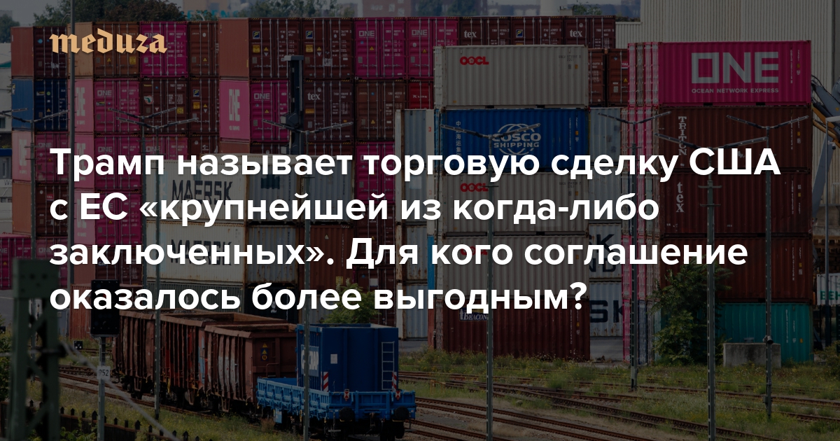Трамп называет торговую сделку США с ЕС «крупнейшей из когда-либо заключенных». Для кого соглашение оказалось более выгодным? Миллиарды инвестиций и пиар — для Трампа; сближение с США и преимущество перед Китаем — для ЕС