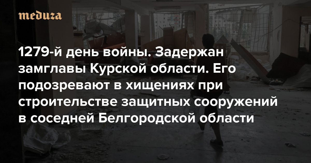 Война Тысяча двести семьдесят девятый день. Задержан замглавы Курской области. Его подозревают в хищениях при строительстве защитных сооружений в соседней Белгородской области