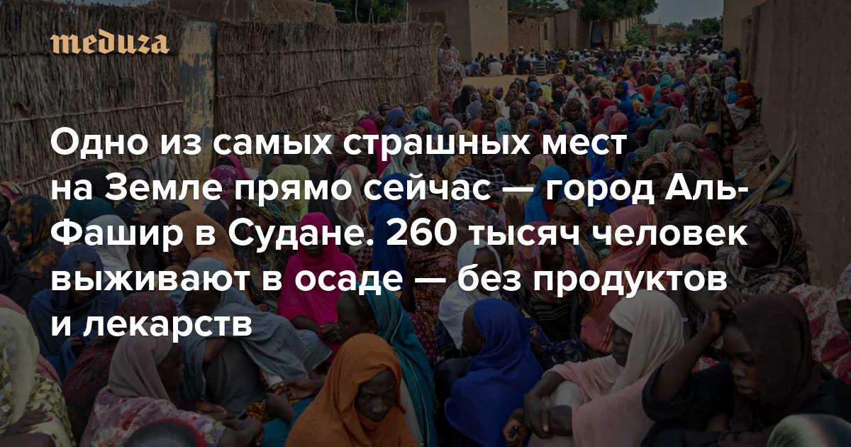 Одно из самых страшных мест на Земле прямо сейчас — город Аль-Фашир в Судане 260 тысяч человек выживают в осаде — без продуктов и лекарств. В городе стремительно распространяется холера, а доставить вакцину невозможно из-за боев