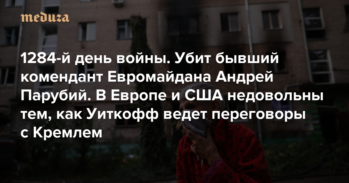 Война Тысяча двести восемьдесят четвертый день. Убит бывший комендант Евромайдана Андрей Парубий. В Европе и США недовольны тем, как Уиткофф ведет переговоры с Кремлем