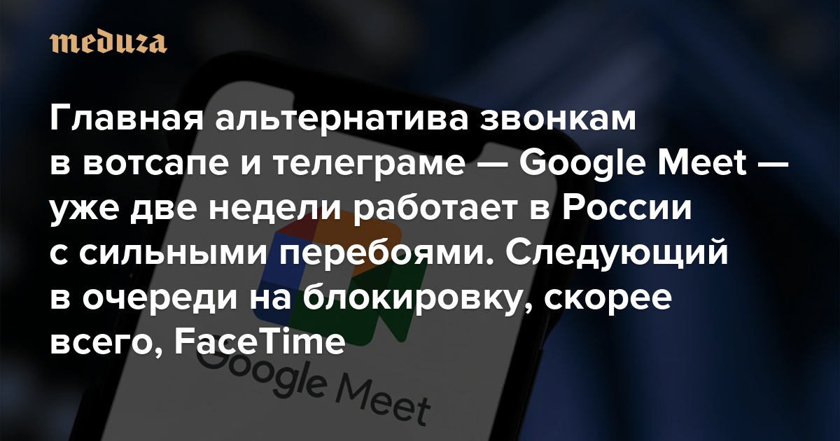 Главная альтернатива звонкам в вотсапе и телеграме — Google Meet — уже две недели работает в России с сильными перебоями Следующий в очереди на блокировку, скорее всего, FaceTime