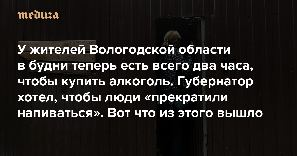 Раз купили, надо выпить У жителей Вологодской области в будни теперь есть всего два часа, чтобы купить алкоголь. Губернатор хотел, чтобы люди «прекратили напиваться». Вот что из этого вышло