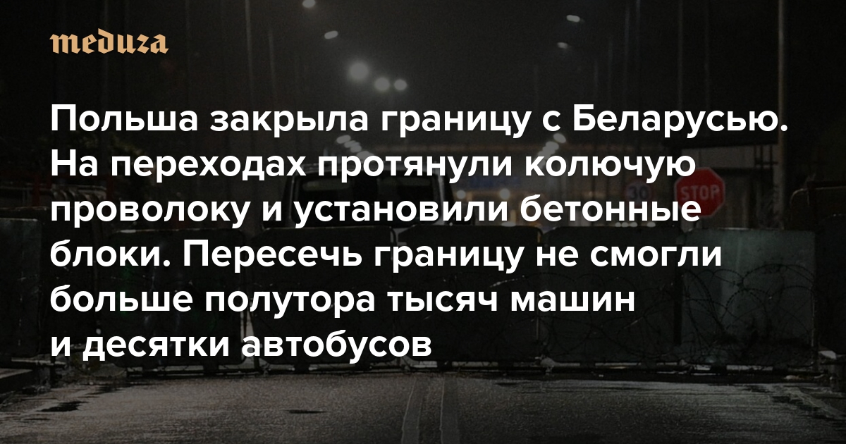 Польша закрыла границу с Беларусью. На переходах протянули колючую проволоку и установили бетонные блоки Пересечь границу не смогли больше полутора тысяч машин и десятки автобусов