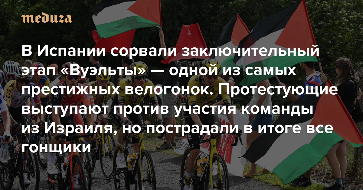 Пропалестинские активисты сорвали заключительный этап испанской «Вуэльты» — одной из самых престижных велогонок Они выступают против участия команды из Израиля, но от протестов пострадали в итоге все гонщики
