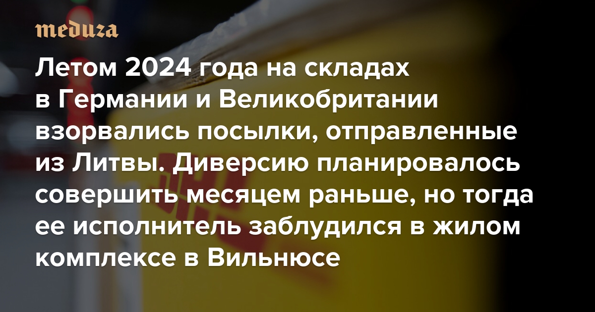 Летом 2024 года на складах в Германии и Великобритании взорвались посылки, отправленные из Литвы В причастности к взрывам обвиняют Россию. Диверсию планировалось совершить месяцем раньше, но тогда ее исполнитель заблудился в жилом комплексе в Вильнюсе