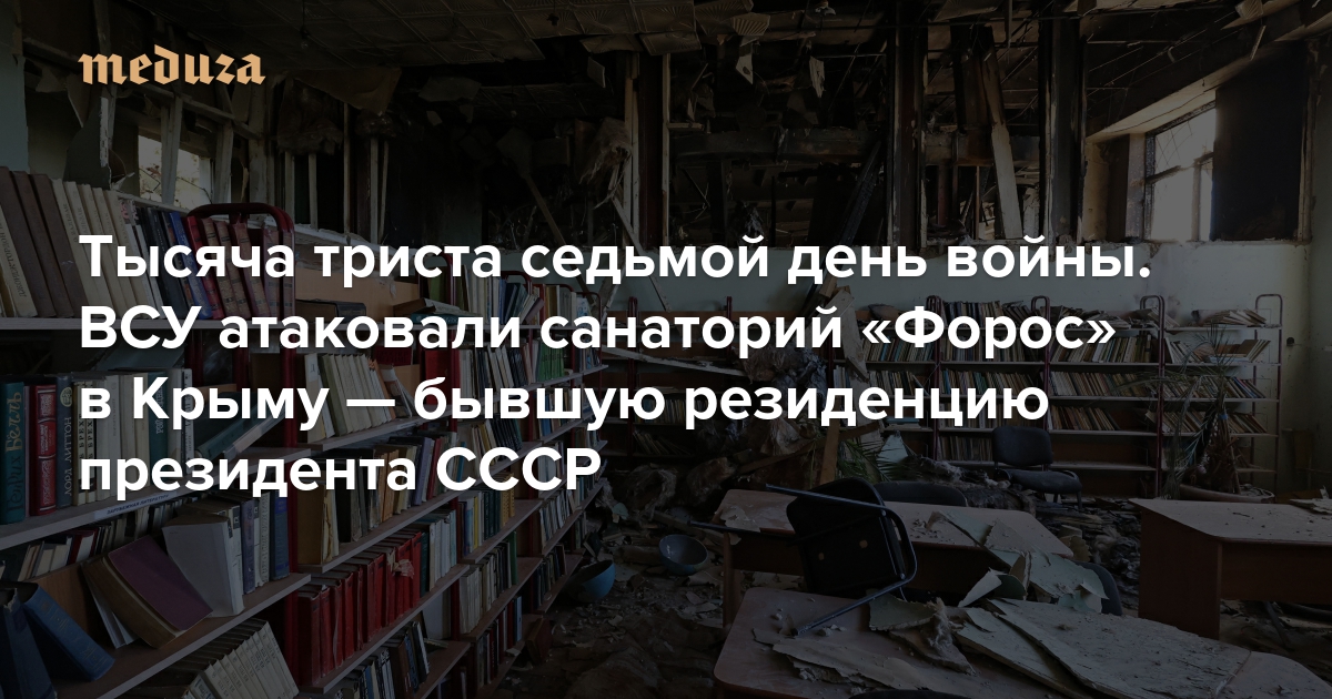 Война Тысяча триста седьмой день. ВСУ атаковали санаторий «Форос» в Крыму — бывшую резиденцию президента СССР