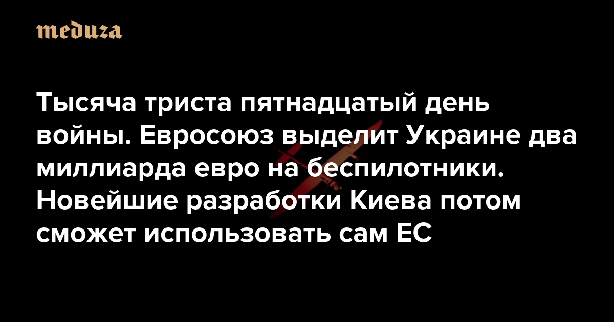 Война Тысяча триста пятнадцатый день. Евросоюз выделит Украине два миллиарда евро на беспилотники. Новейшие разработки Киева потом сможет использовать сам ЕС