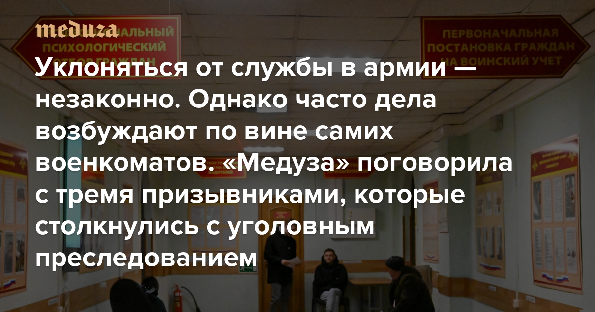 Уклоняться от службы в армии — незаконно. Однако часто дела возбуждают по вине самих военкоматов «Медуза» поговорила с тремя призывниками, которые подали заявления на альтернативную гражданскую службу и столкнулись с уголовным преследованием