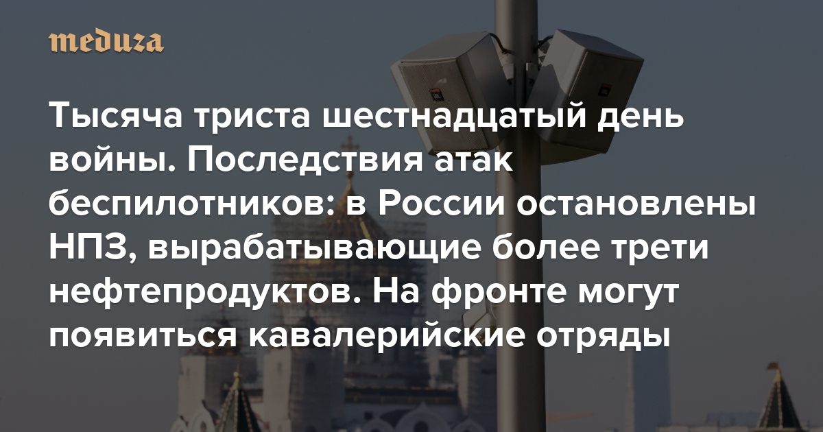 Война Тысяча триста шестнадцатый день. Последствия атак беспилотников: в России остановлены НПЗ, вырабатывающие более трети нефтепродуктов. На фронте могут появиться кавалерийские отряды