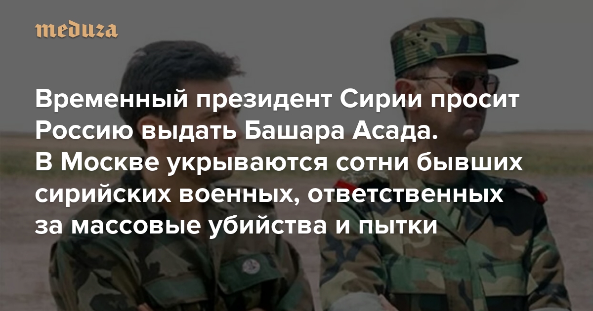 Временный президент Сирии просит Россию выдать Башара Асада В Москве укрываются сотни бывших сирийских военных, ответственных за массовые убийства и пытки