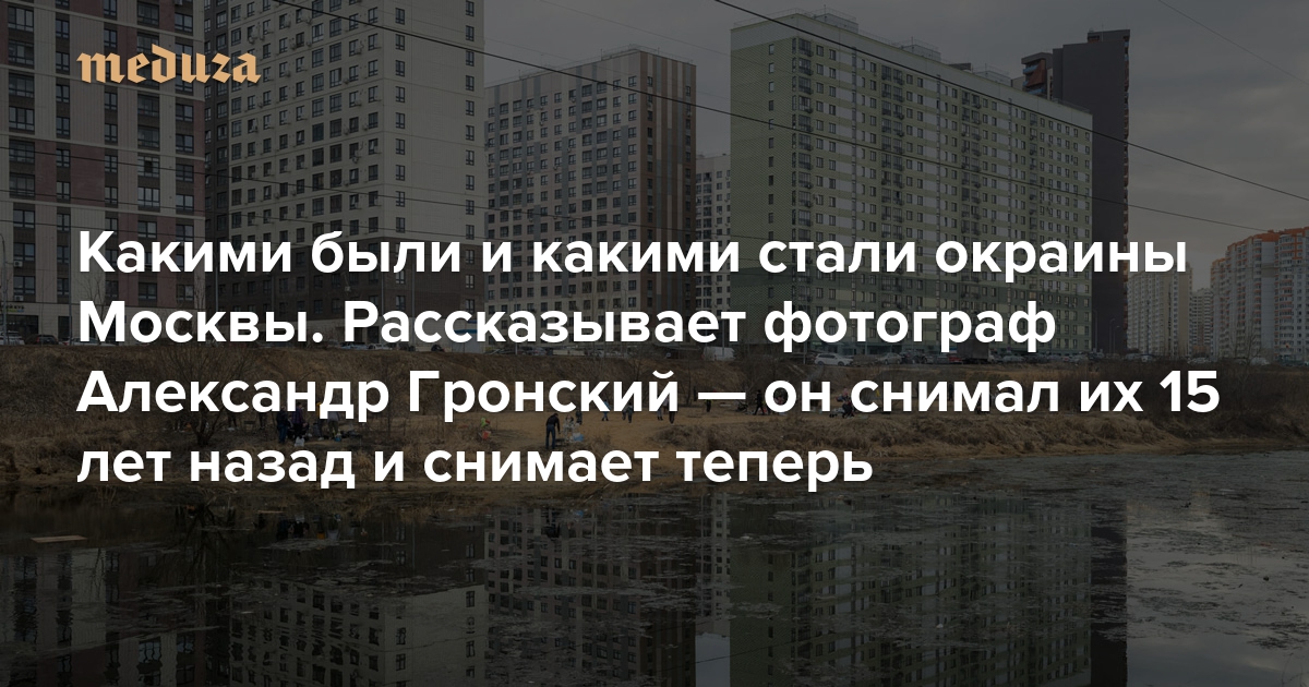 «Это было тревожное и таинственное пространство. Теперь везде — градостроительная рука» Какими были и какими стали окраины Москвы. Рассказывает фотограф Александр Гронский — он снимал их 15 лет назад и снимает до сих пор