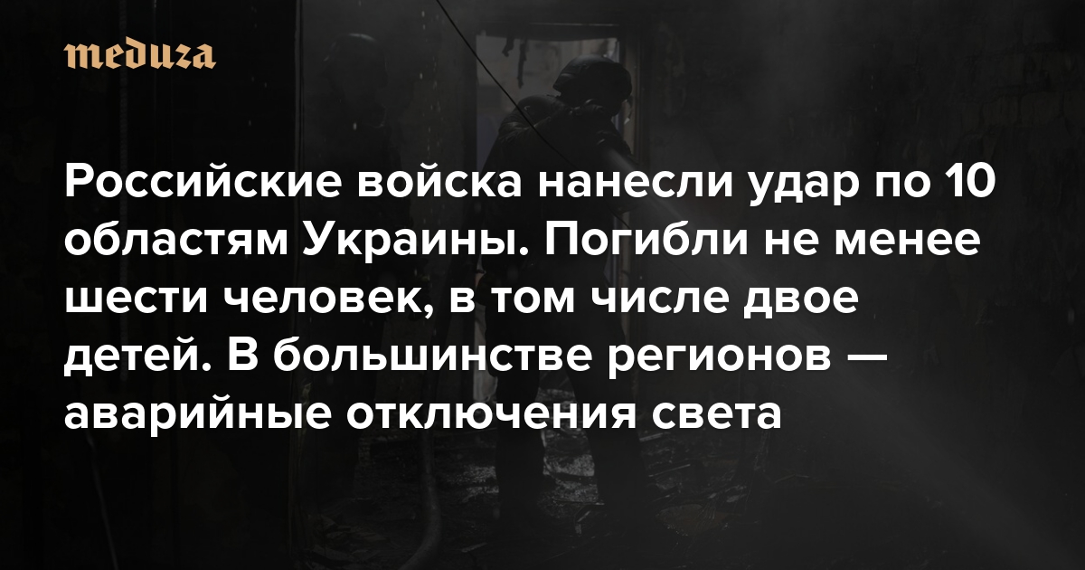 Российские войска нанесли удар по 10 областям Украины Погибли не менее семи человек, в том числе двое детей. В большинстве регионов — аварийные отключения света