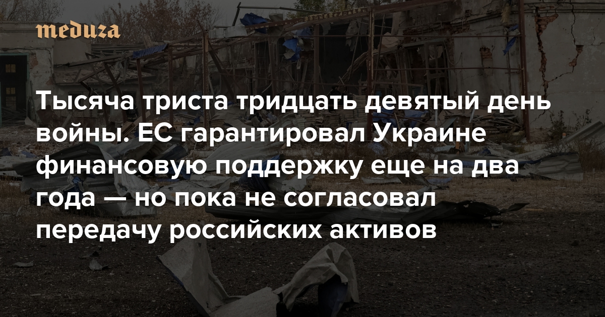 Война Тысяча триста тридцать девятый день. ЕС гарантировал Украине финансовую поддержку еще на два года — но пока не согласовал передачу российских активов