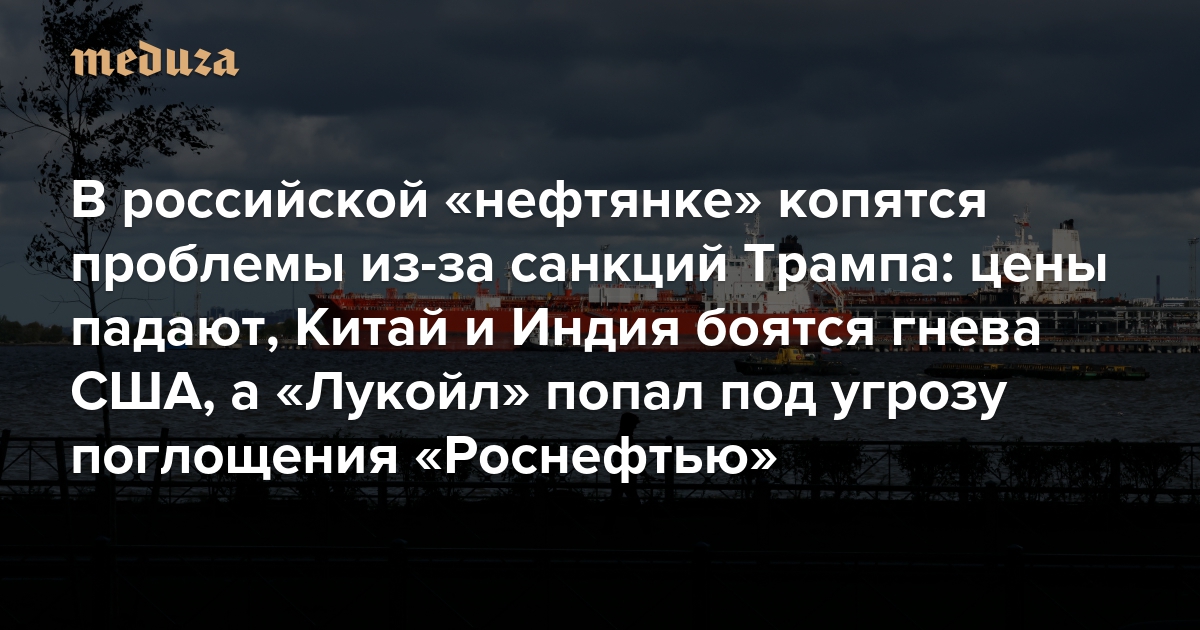 В российской «нефтянке» копятся проблемы из-за санкций Трампа: цены падают, Китай и Индия боятся гнева США, а «Лукойл» попал под угрозу поглощения «Роснефтью» Главное об эффекте американских ограничений