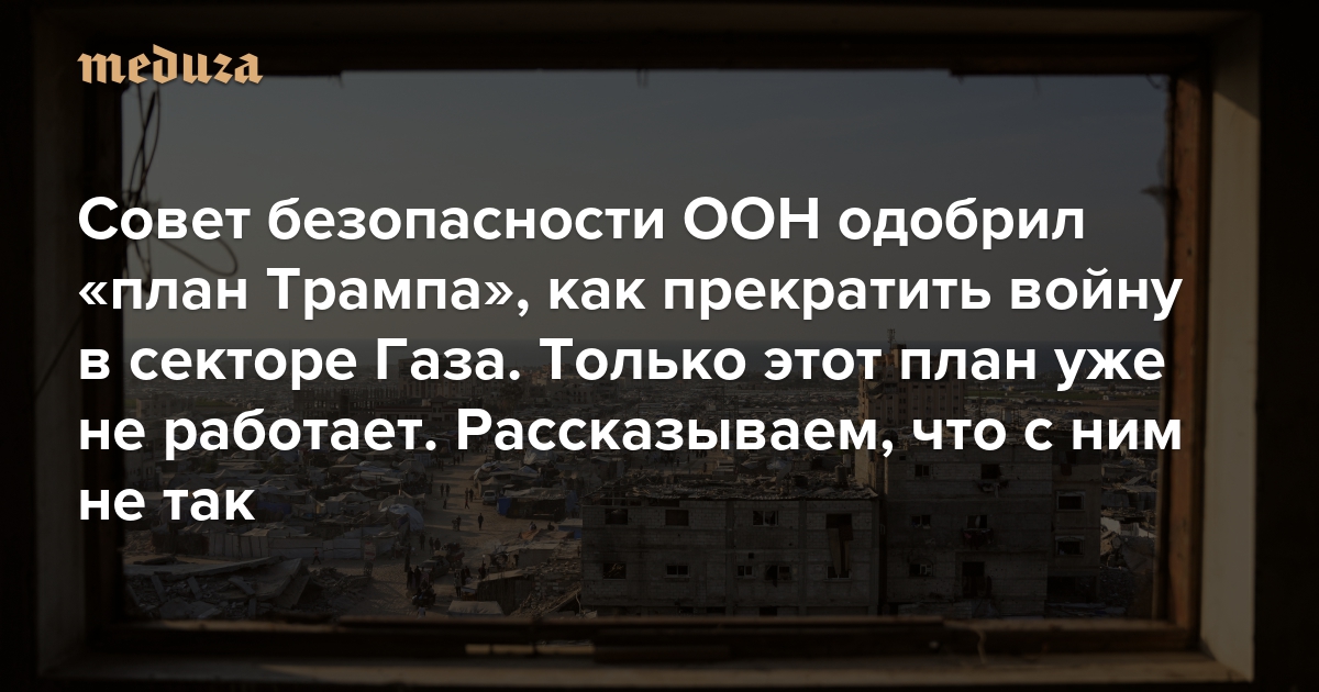 Совет безопасности ООН одобрил «план Трампа», как прекратить войну в секторе Газа. Только этот план уже не работает Рассказываем, что с ним не так