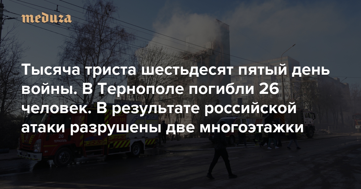Война Тысяча триста шестьдесят пятый день. В Тернополе погибли 26 человек. В результате российской атаки разрушены две многоэтажки
