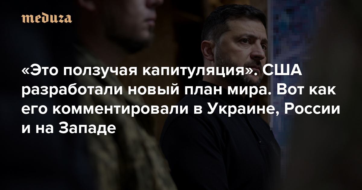 19 ноября сразу несколько западных СМИ раскрыли детали нового мирного плана по Украине, над которым непублично работали люди из команд Владимира Путина и Дональда Трампа (не пригласив к переговорам ни саму Украину, ни Евросоюз). Документ, состоящий из 28 пунктов, во многом повторяет максималистские требования Кремля. Похоже, его не считают реалистичным ни в Украине, ни на Западе, ни — что парадоксально — даже в самой России. «Медуза» собрала реакции на этот мирный план.
