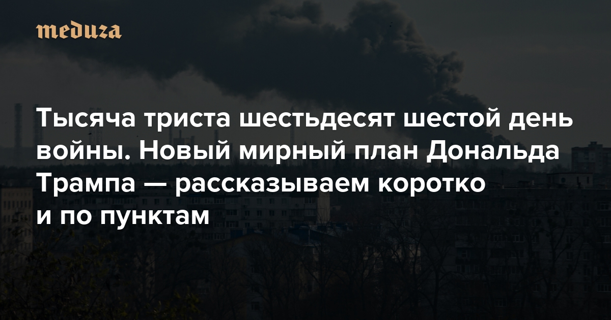«Медуза» с 24 февраля 2022 года в прямом эфире рассказывает о российско-украинской войне. В наших ежедневных материалах мы публикуем ваши письма, потому что уверены: о войне нужно продолжать говорить. Что вы думаете по поводу мирного плана, предложенного США? Это поощрение агрессии РФ или возможность закончить почти уже четырехлетнюю войну? Стоит ли Украине согласиться на эти условия, пока ситуация не стала хуже, — или отвергнуть и продолжать войну в надежде добиться более сильных позиций на переговорах в будущем? Форма для обратной связи — в конце этой статьи. Обзор предыдущего дня можно прочитать тут.