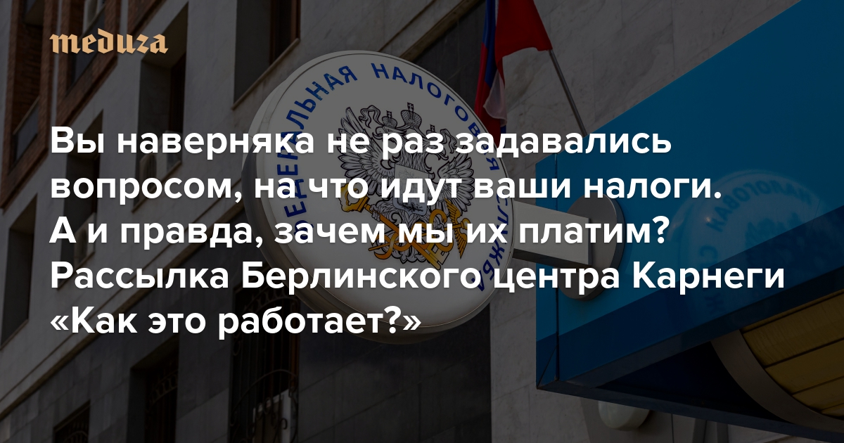 Вы наверняка не раз задавались вопросом, на что идут ваши налоги. А и правда, зачем мы их платим? И главное, сколько? Новый выпуск рассылки Берлинского центра Карнеги «Как это работает?»