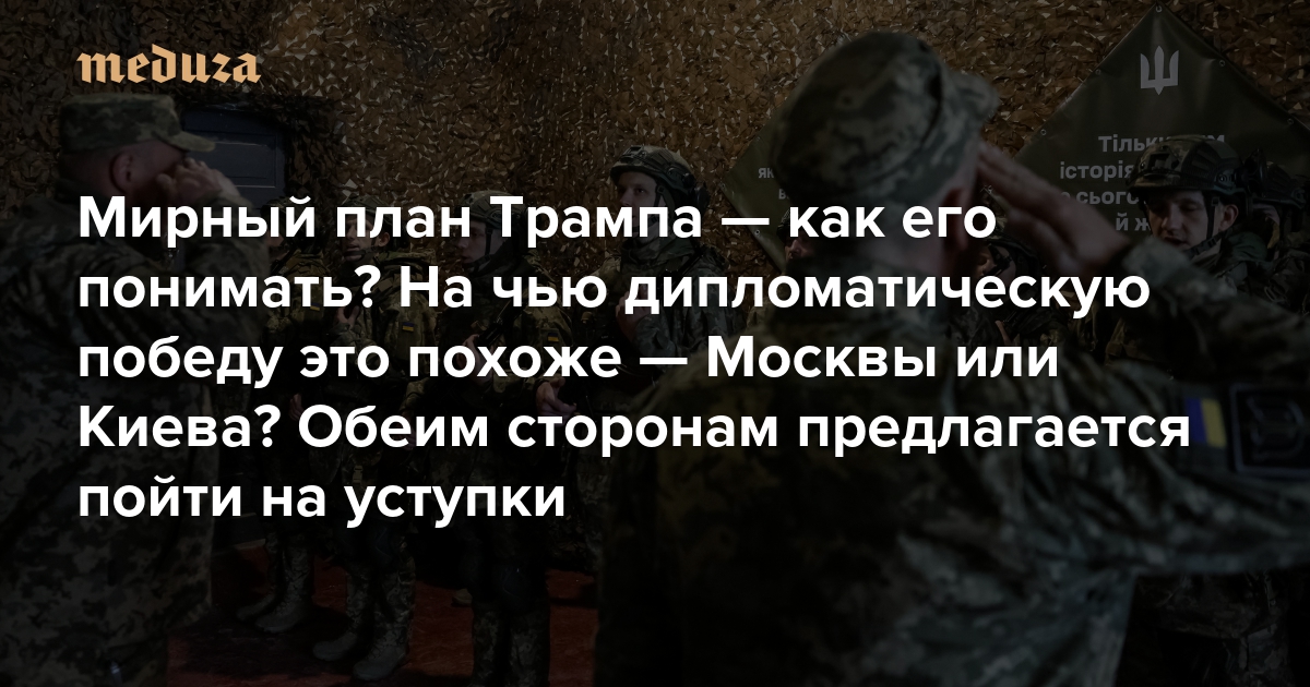 Мирный план Трампа — как его понимать? На чью дипломатическую победу это похоже — Москвы или Киева? (Если, конечно, он приближает нас к окончанию войны) Обеим сторонам предлагается пойти на уступки. Рассказываем, на какие именно