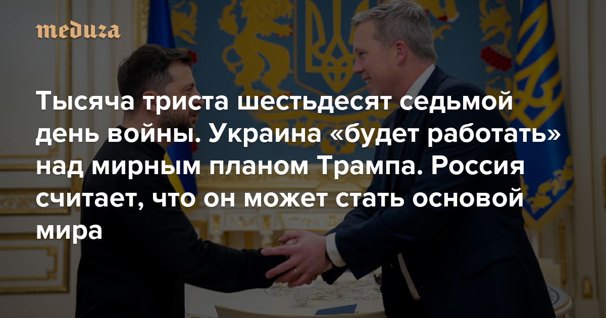«Медуза» с 24 февраля 2022 года в прямом эфире рассказывает о российско-украинской войне. В наших ежедневных материалах мы публикуем ваши письма, потому что уверены: о войне нужно продолжать говорить. Что вы думаете по поводу мирного плана, предложенного США? Это поощрение агрессии РФ или возможность закончить почти уже четырехлетнюю войну? Стоит ли Украине согласиться на эти условия, пока ситуация не стала хуже, — или отвергнуть и продолжать войну в надежде добиться более сильных позиций на переговорах в будущем? Форма для обратной связи — в конце этой статьи. Обзор предыдущего дня можно прочитать тут.