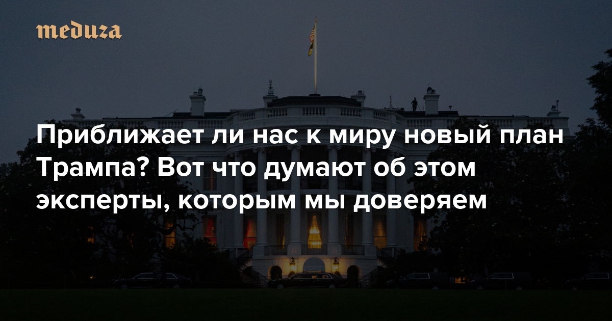 Многие мечтают о мире, но почти никто не может понять, приближает ли нас к нему новый план Трампа Вот что говорят «Медузе» эксперты, которым мы доверяем