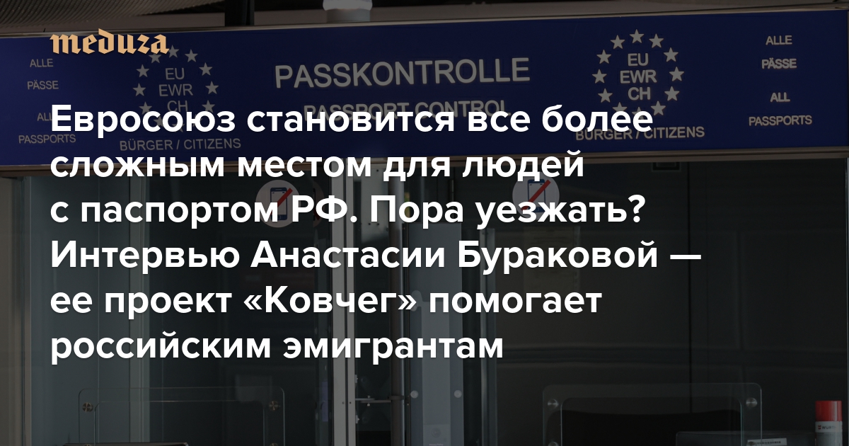 «Остановить этот поезд мы не можем» Евросоюз становится все более сложным местом для людей с паспортом РФ. Пора уезжать? Интервью Анастасии Бураковой — ее проект «Ковчег» помогает российским эмигрантам