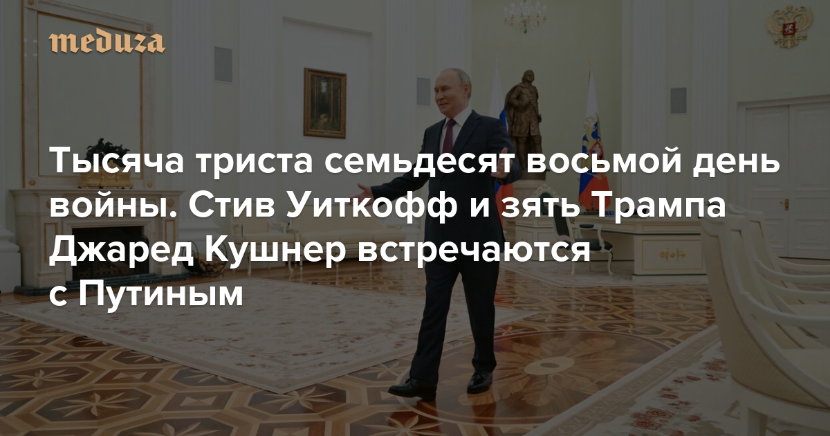 Война Тысяча триста семьдесят восьмой день. Стив Уиткофф и зять Трампа Джаред Кушнер встречаются с Путиным