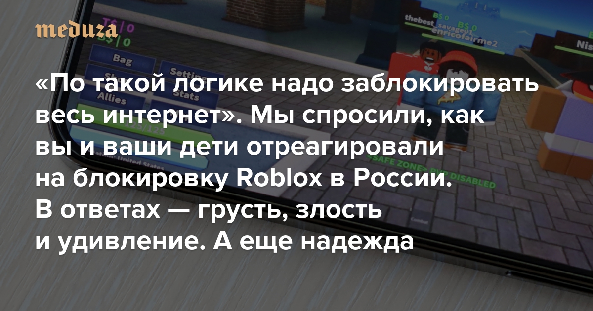 «По такой логике надо заблокировать весь интернет» Мы спросили, как вы и ваши дети отреагировали на блокировку Roblox в России. В ответах — грусть, злость и удивление. А еще надежда
