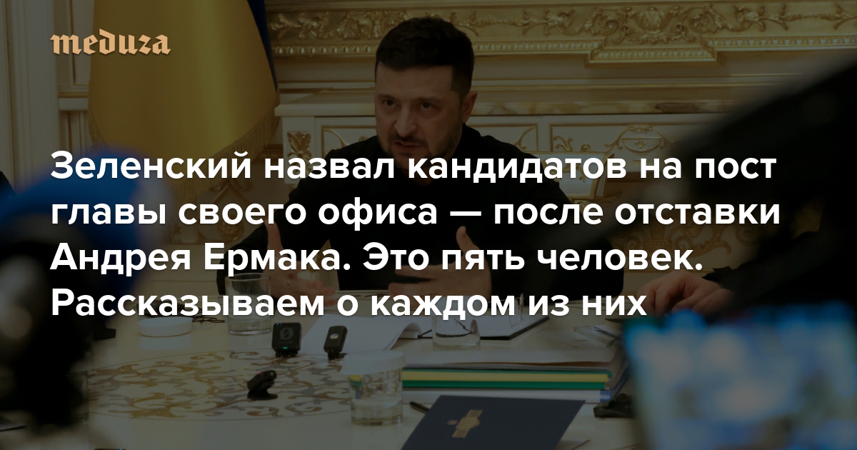Президент Украины Владимир Зеленский назвал кандидатов на пост главы своего офиса. Эта должность освободилась в конце ноября после отставки Андрея Ермака, которого еще недавно называли самым влиятельным человеком в стране после президента. Ермака уволили после того, как у него прошел обыск по громкому делу о хищениях в госкомпании «Энергоатом». В список тех, кто может возглавить офис президента Украины, вошли пять украинских чиновников. Рассказываем о каждом из них.