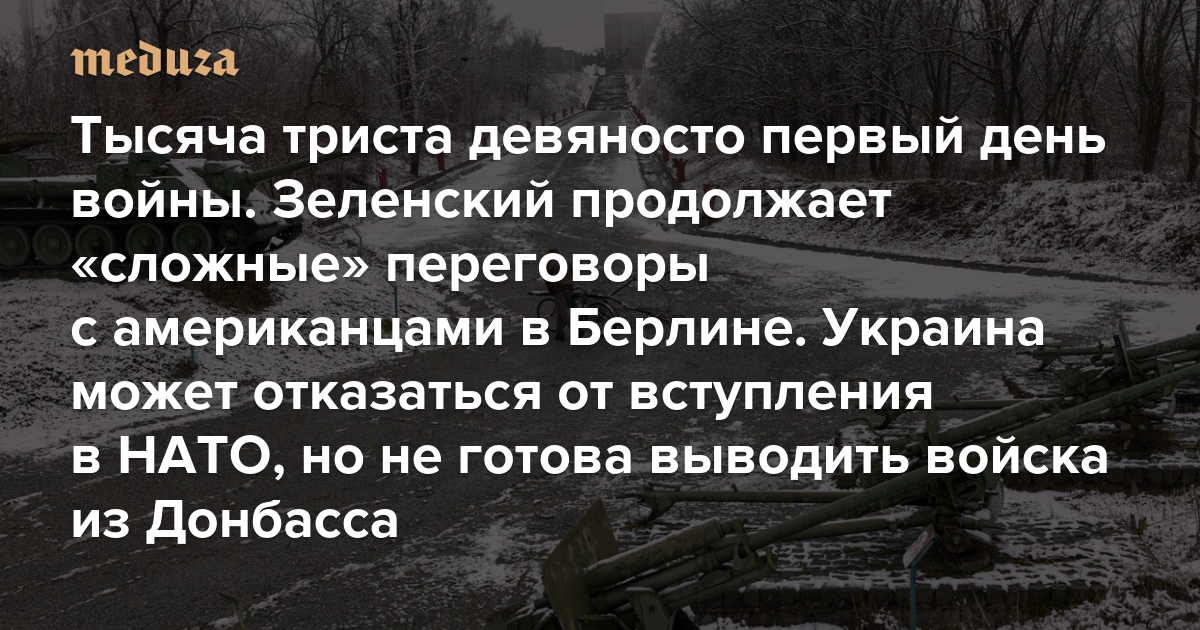 Война Тысяча триста девяносто первый день. Зеленский продолжает «сложные» переговоры с американцами в Берлине. Украина может отказаться от вступления в НАТО, но не готова выводить войска из Донбасса