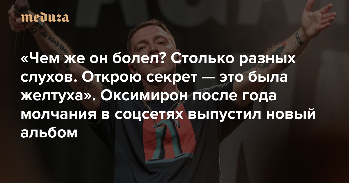 «Чем же он болел? Столько разных слухов. Открою секрет — это была желтуха» Оксимирон после года молчания в соцсетях выпустил новый альбом