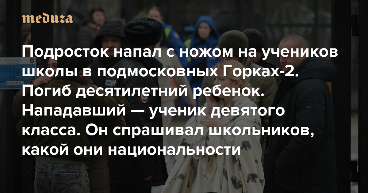 Подросток напал с ножом на учеников школы в подмосковных Горках-2. Погиб десятилетний ребенок Нападавший — ученик девятого класса. Он спрашивал школьников, какой они национальности