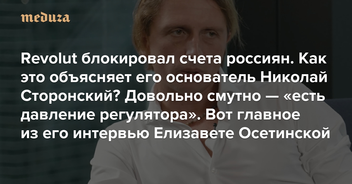 Revolut блокировал счета россиян. Как это объясняет его основатель Николай Сторонский? Довольно смутно — «есть давление регулятора». Вот главное из его интервью Елизавете Осетинской