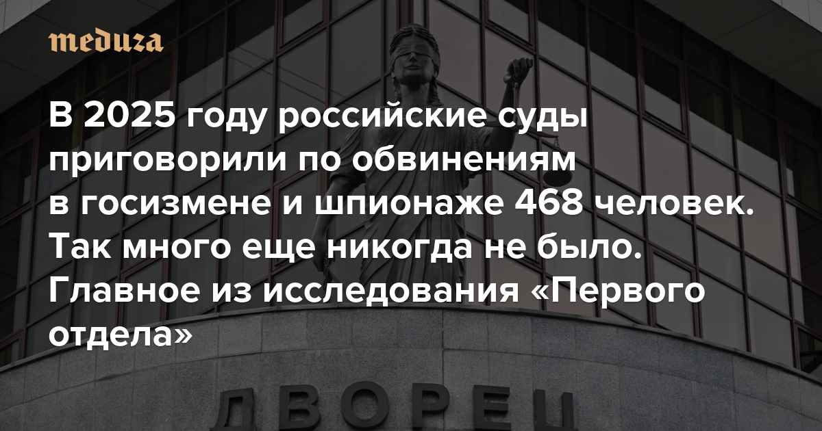 В 2025 году российские суды приговорили по обвинениям в госизмене и шпионаже 468 человек. Так много еще никогда не было Главное из исследования «Первого отдела»