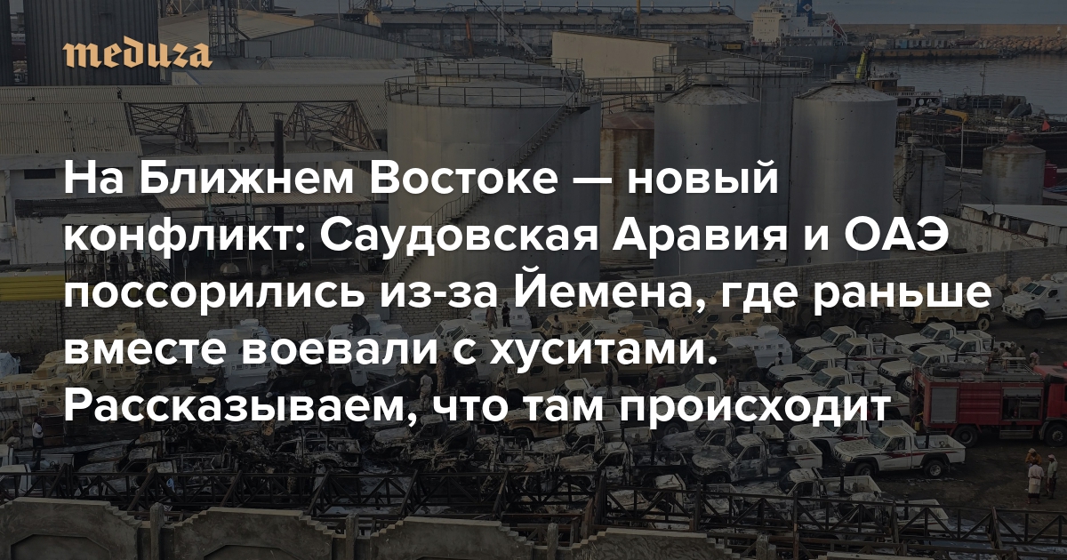 На Ближнем Востоке — новый конфликт: Саудовская Аравия и ОАЭ поссорились из-за Йемена, где раньше вместе воевали с хуситами Рассказываем, что там происходит