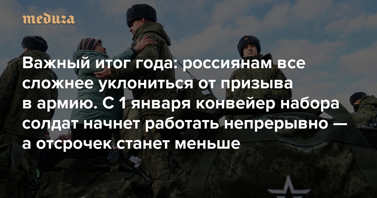 Важный итог года: россиянам все сложнее уклониться от призыва в армию. С 1 января конвейер набора солдат начнет работать непрерывно — а отсрочек станет меньше
